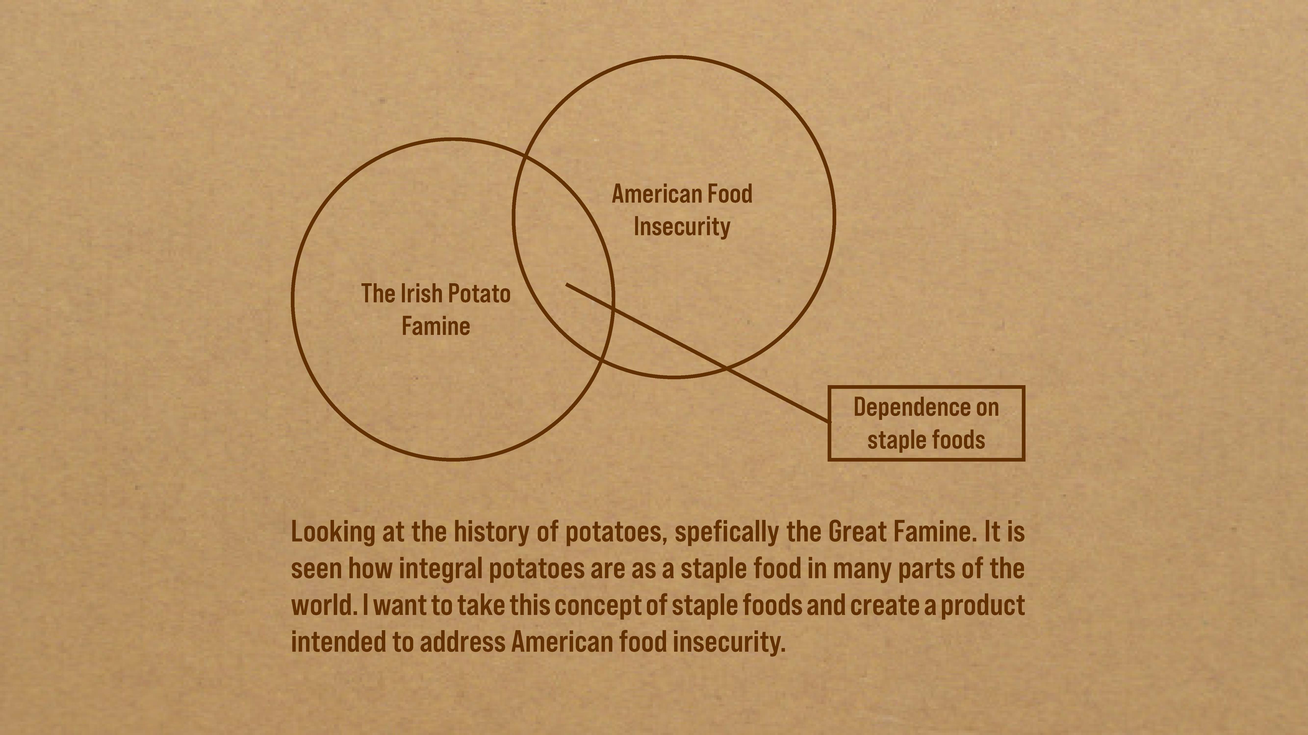 A semester long project for the Product Environment Material course. Starting with the potato as a commodity. I used potatoes as a vessel for a possible solution to American food insecurity, creating a brand for my instant mashed potato. Prototyping products, ideation, branding, packaging design, narrative environment, 3D modeling in Blender and speculative design.
